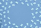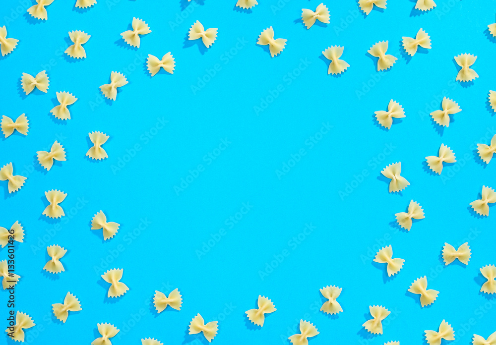 Frame from wheat pasta on blue background