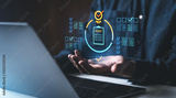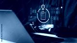 Digital audit concept with holographic elements.