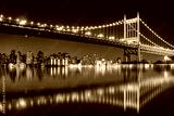Beautiful night view with lights of Robert F. Kennedy RFK bridge formerly known as the Triborough bridge from Astoria Queens across the East River toward New York City upper Manhattan skyline