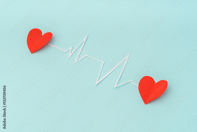 Paper cut of cardiogram of heart rhythm for Valentines Day .