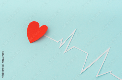Paper cut of cardiogram of heart rhythm for Valentines Day .