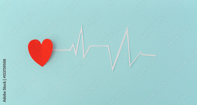 Paper cut of cardiogram of heart rhythm for Valentines Day .