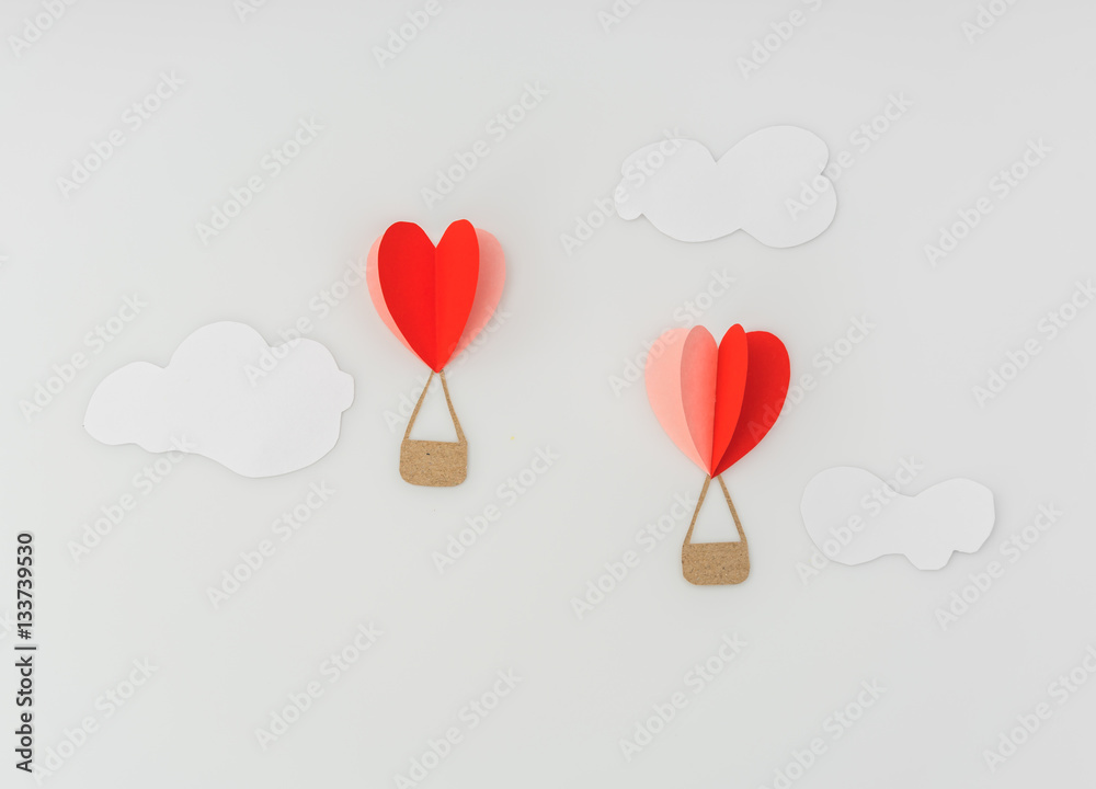 Paper cut of Heart Hot air balloons for Valentine's Day celebrat