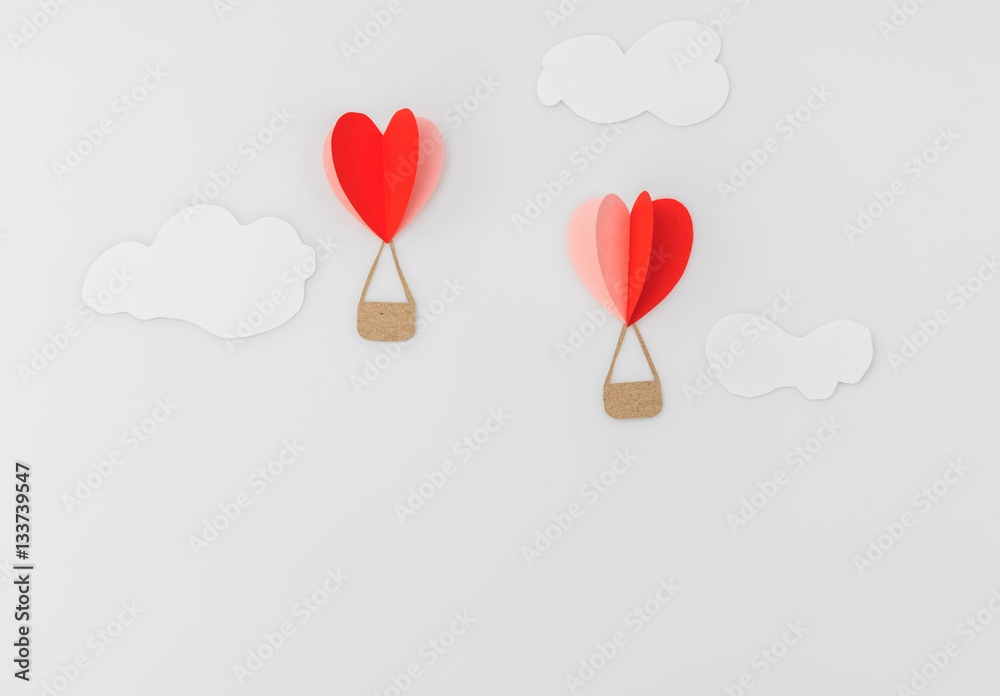 Paper cut of Heart Hot air balloons for Valentine's Day celebrat