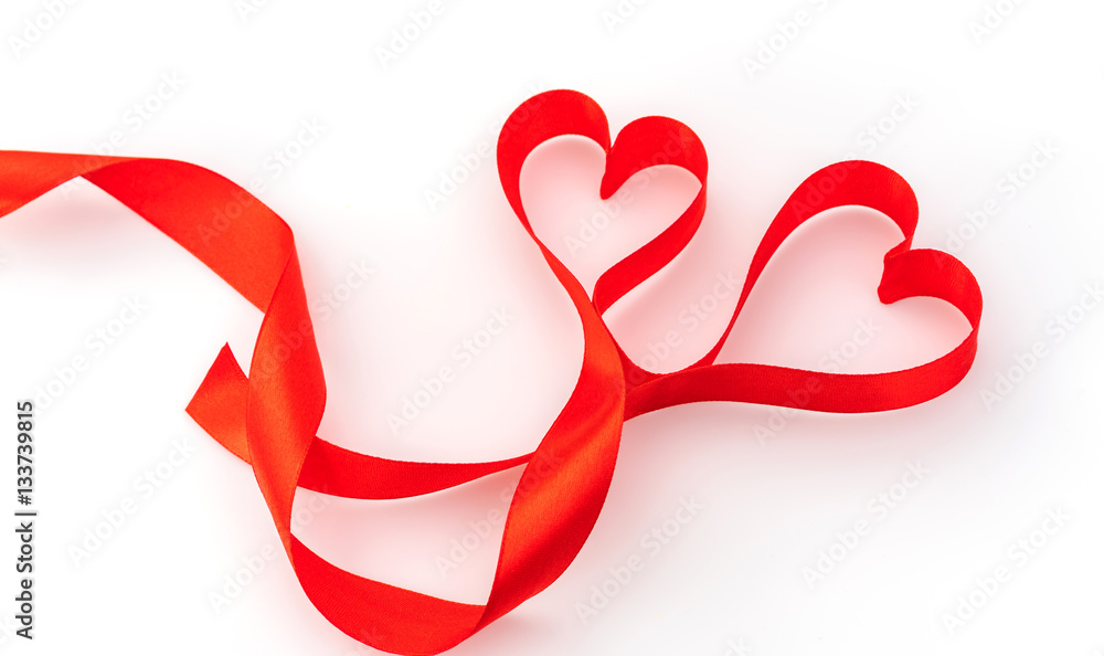 Valentine Heart. Red Silk Ribbon. Love Symbol .