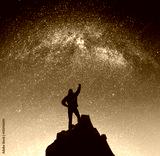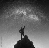 Champion against night landscape. Black and white
