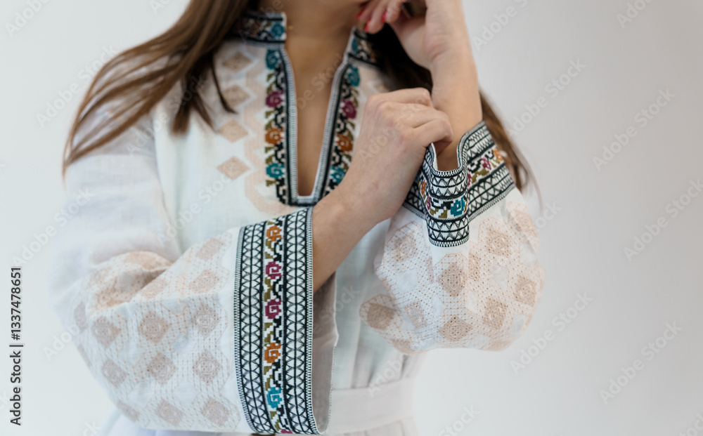 Elegant Traditional White Embroidery Dress with Colorful Ornate Detailed Patterns