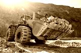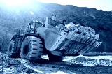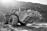 Wheel loader machine unloading rocks