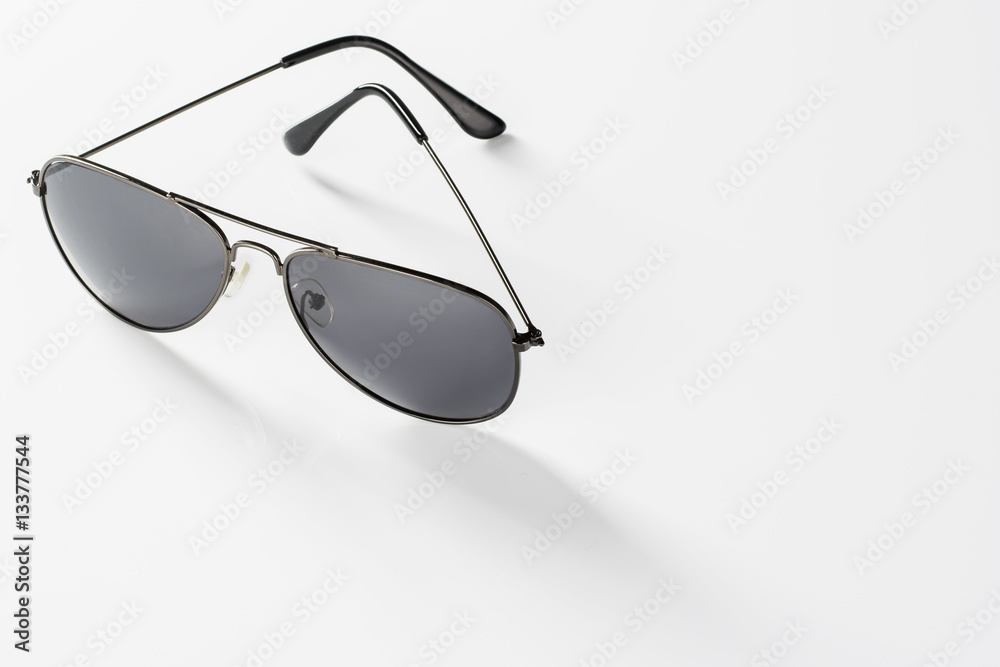 Modern sunglasses isolated on white background with copy space. Product photograph with room for text.