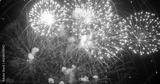 Red Firework celebrate anniversary happy new year 2025, 4th of july holiday festival. red firework in night time celebrate national holiday. Countdown to new year 2025 festival party time event