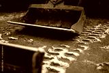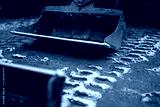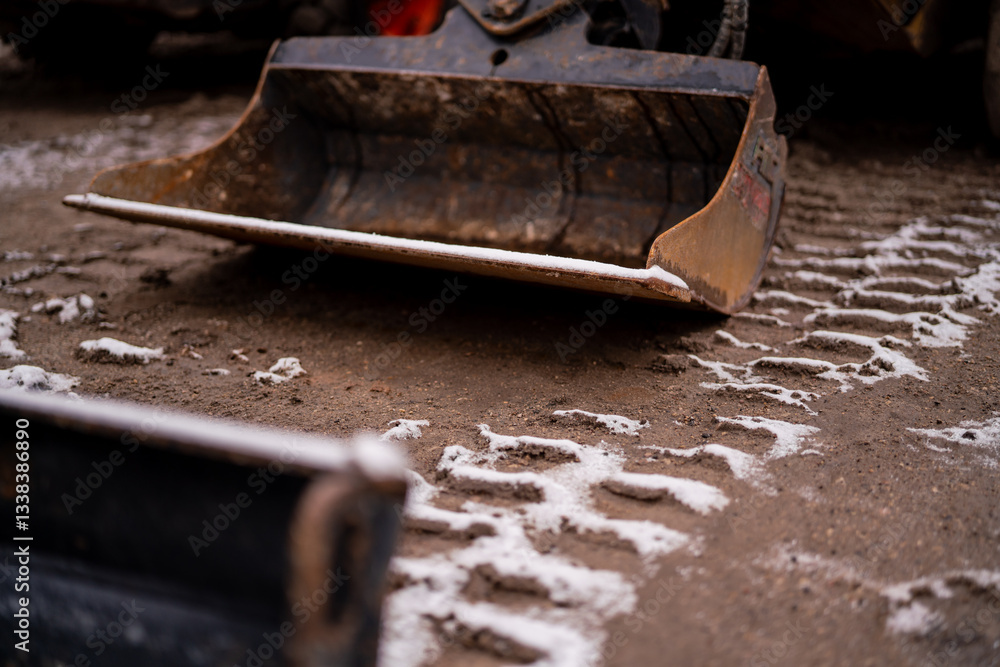 Industrial cold winter off season and broken machinery for construction industry. Standing still of very old. Standing still construction industry