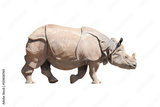 The Indian Rhinoceros (Rhinoceros unicornis). Animals isolated on white background. Object with clipping path.