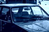 Old vintage green car windshield close up. Spare parts of street cars for retro remaking and fixing. Glossy and visible windshield