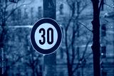 Speed limitation road sign in europe for limiting vehicle speed to "30" Kilometers per hour. Number "30" traffic sign