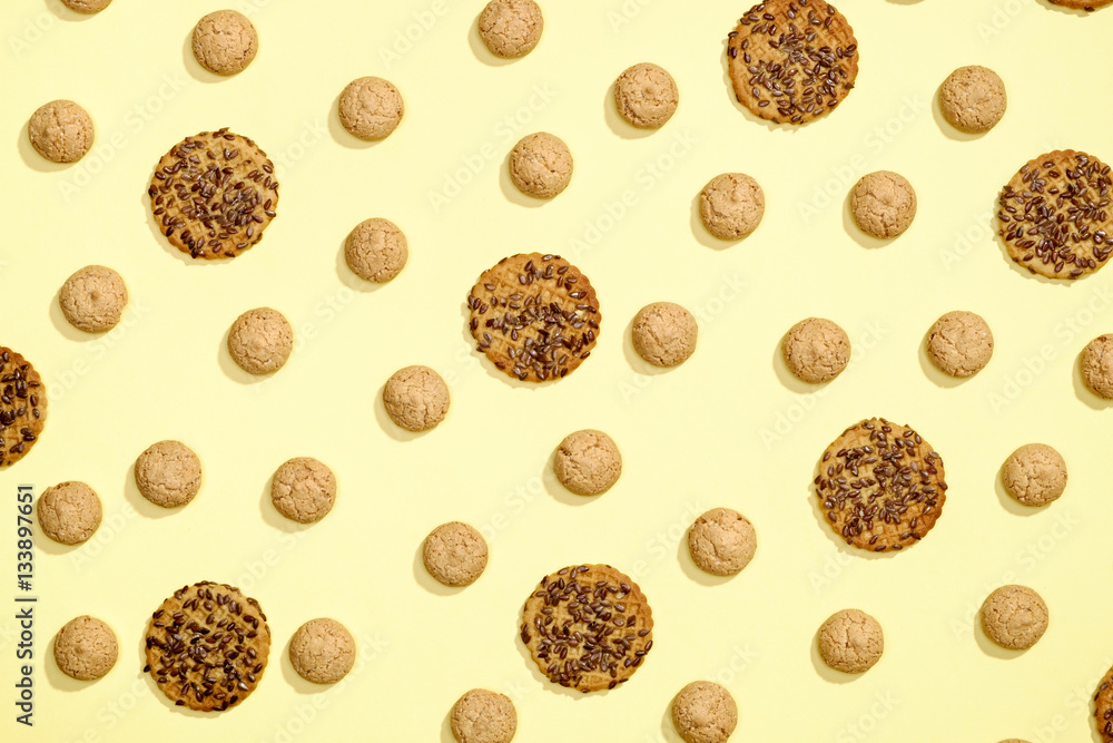 Pattern of cookies on a yellow background