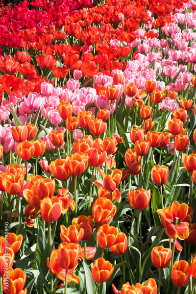 Beautiful blooming tulips in the park.