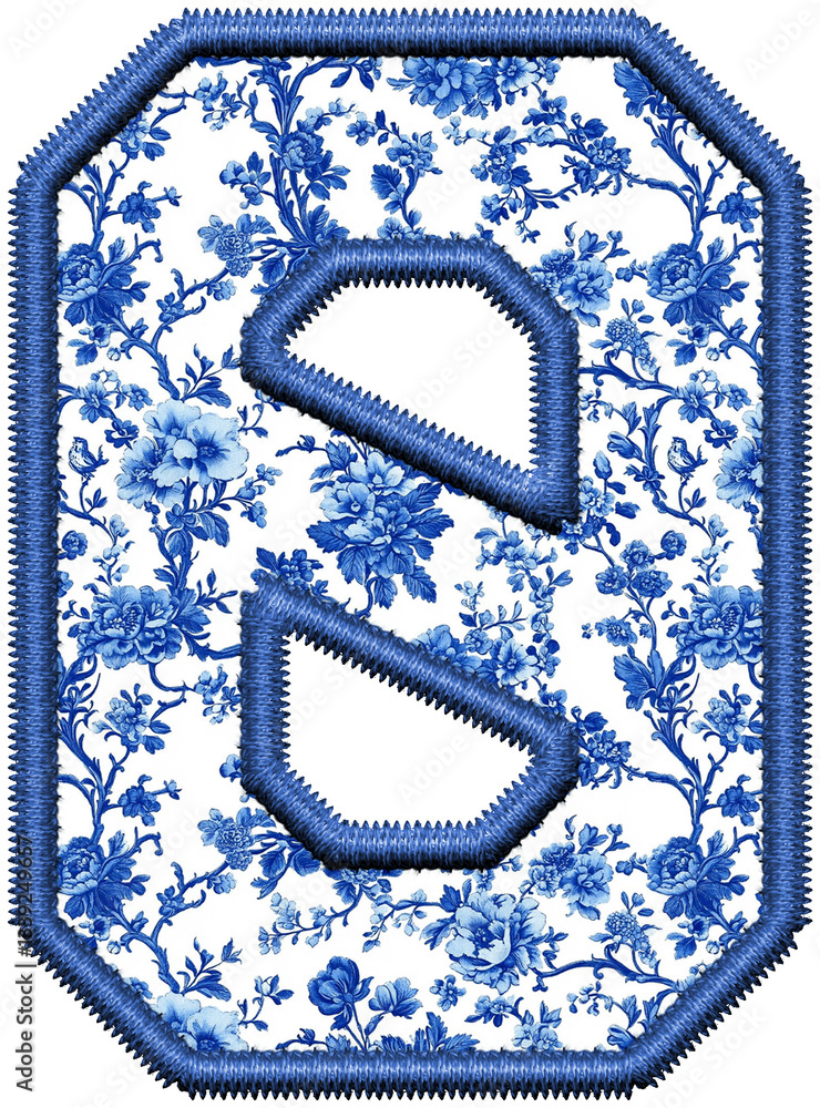 Blue Chinoiserie Number 0 PNG, Sublimation Letters, Blue Toile College, Faux Embroidery Alphabet, Floral Sport Jersey Alpha, romantic shabby boho