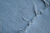 torn light grey denim surface, denim fringe , hole macro texture of blue denim, torn blue denim texture as background photo close up from above