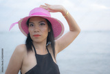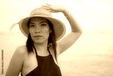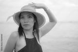 Sexy woman with black dress posing on the beach