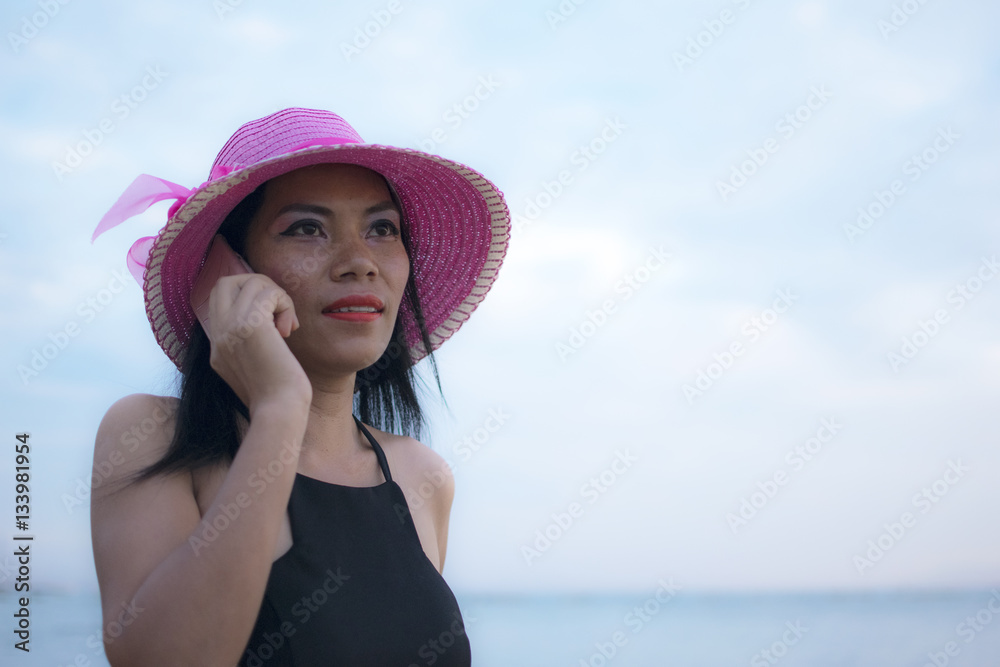 Pretty woman talking with her mobile phone