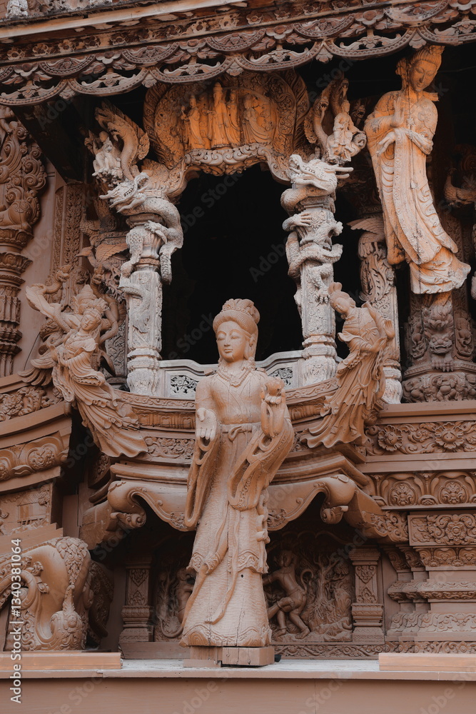 An Intricate and Detailed Sculpture of Deities Presented in Ornate and Beautiful Carving