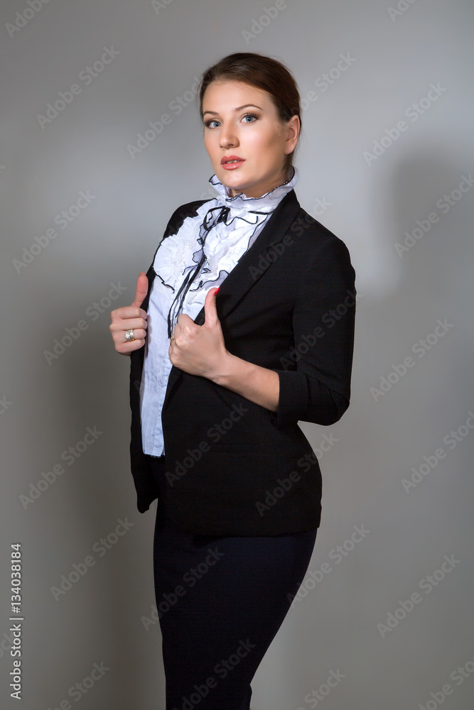 Serious one Business woman portrait isolated. studio shot, vertical image picture, half full length body