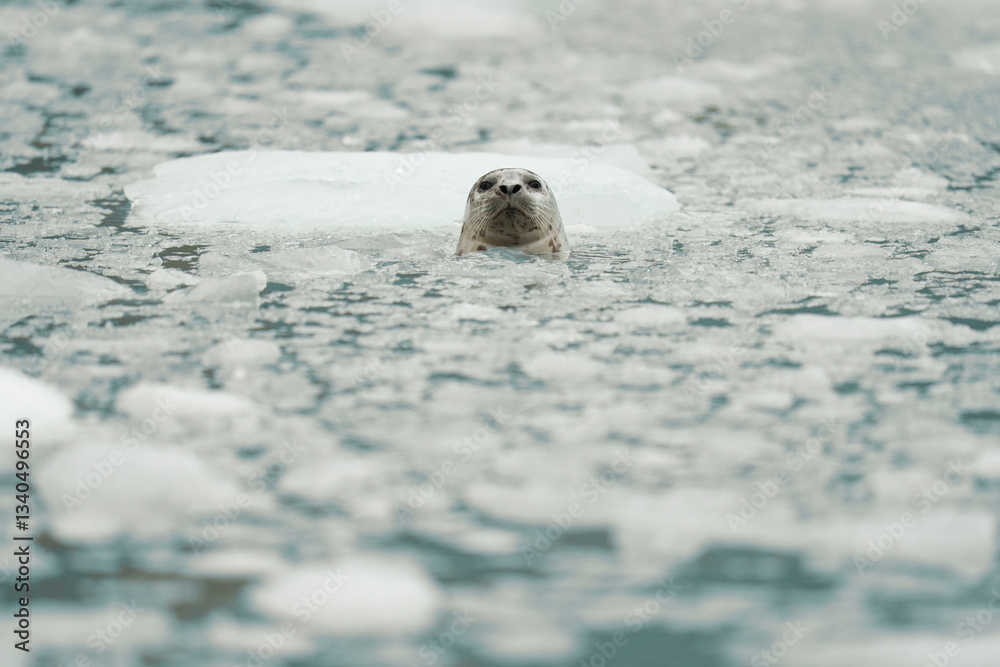 Seal Emerges Amidst Frozen Arctic Waters Surrounded by Ice and S