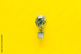 Light bulb with green plant, top view. Eco renewable energy concept.