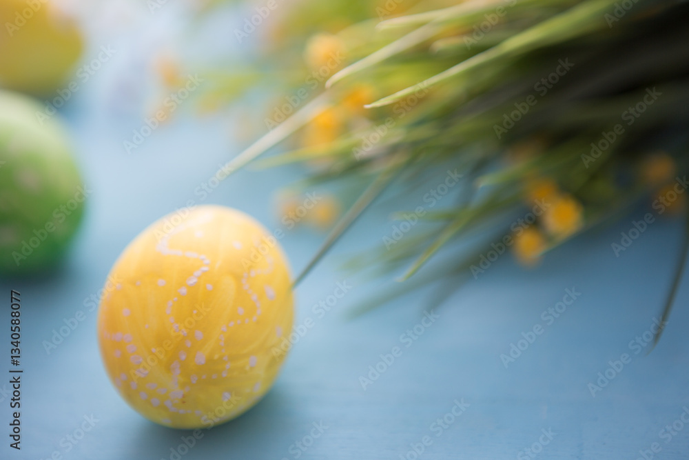 Easter rabbit with Easter eggs on wooden background. Close-up.