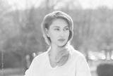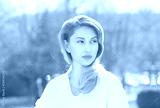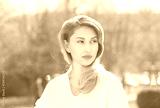 Portrait of woman looking side wards thinking in a park outdoors background late autumn winter