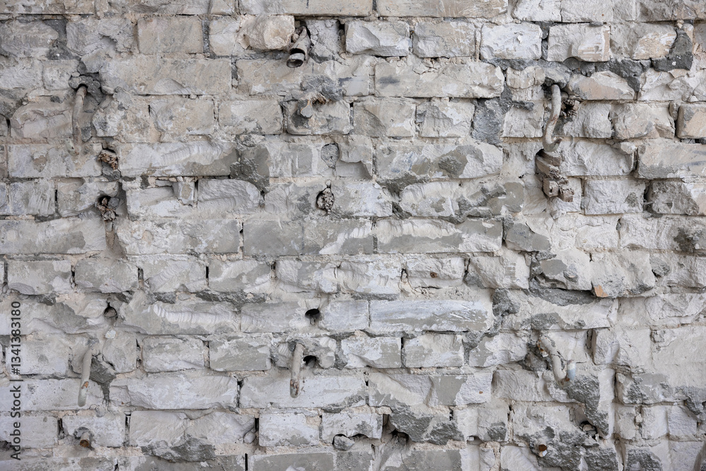 Old exterior brick wall. Old destroyed wall structure in vintage style. Abstract background texture texture. Old exterior wall. Abstract wall with painted grunge background.