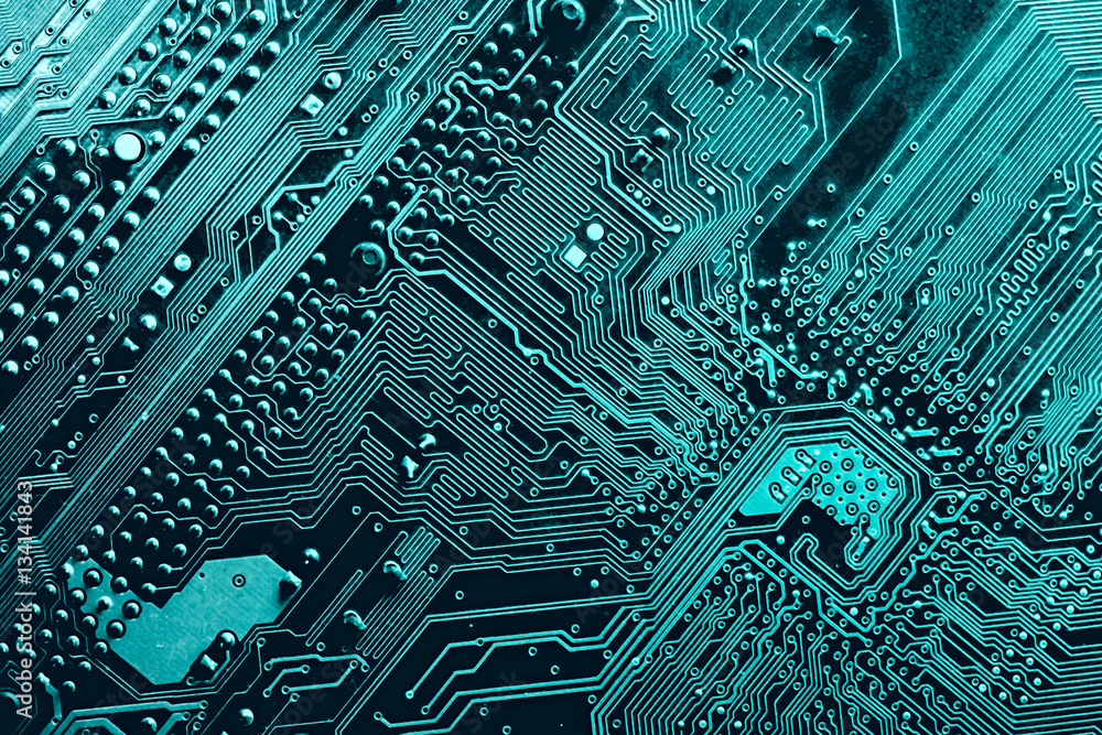 blue printed circuit board, top view