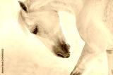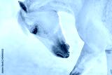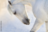 White horse with long mane portrait in motion in winter day