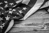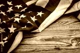 American flag on wood background .