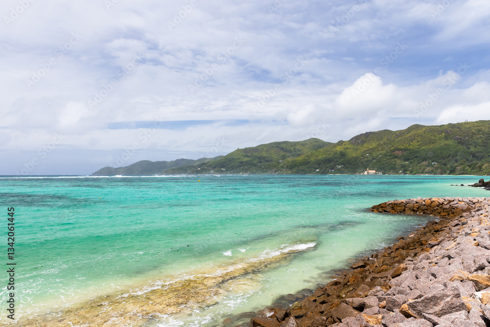 A breathtaking view of a tropical coastline with turquoise clear waters