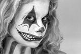 portrait en gros plan d'une jeune fille maquillée en Joker