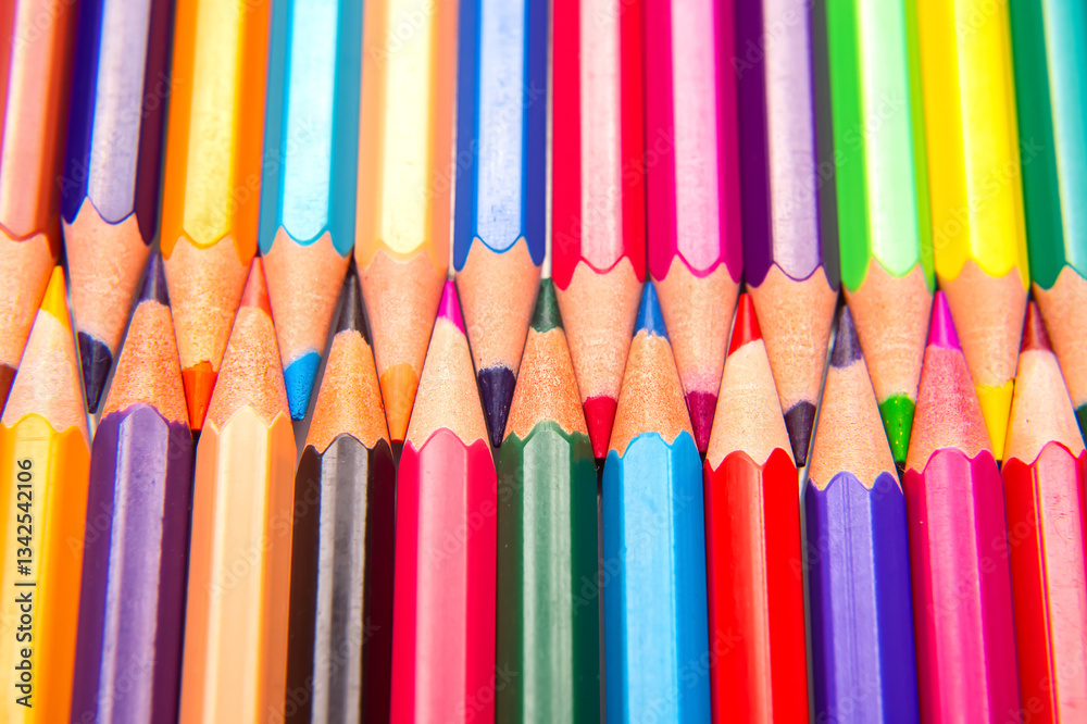 Sharpened multicolored pencils in a grid pattern. Suitable for art supplies, educational materials, or creative stationery imagery.