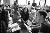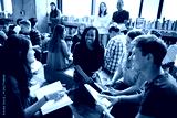 Diverse group of young adults studying in a library. Students, books, and discussions. Engaged in learning, and collaborating in a library setting. Diverse high school students at a library.