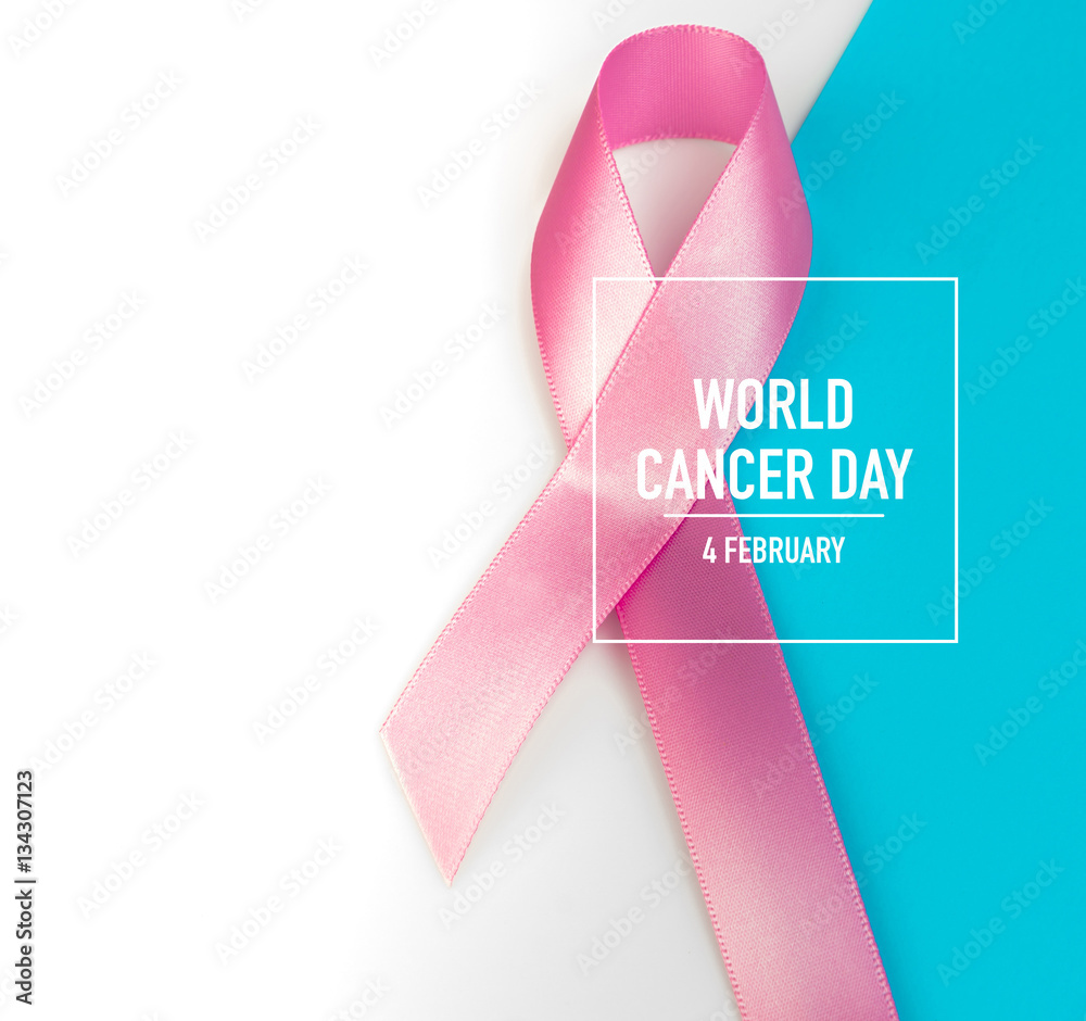 World cancer day : Breast Cancer Awareness Ribbon on white Backg