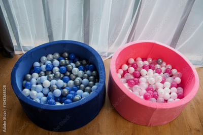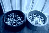 Two Soft Play Ball Pits Filled with Colored Plastic Balls for Childrens' Playroom or Indoor Activity