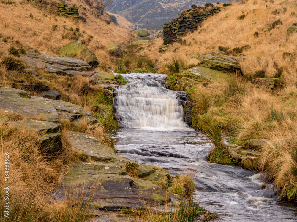 Winters walk up to the canyon around Greenfields reservoir, Saddleworth, Oldham, UK