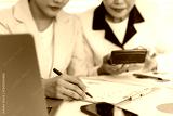 Business team calculate benefit, working woman, spreadsheets, graph financial development, bank accounts, statistics, economy, data analysis, investment analysis, stock exchange, rates income