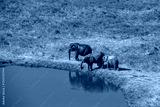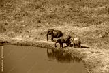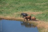 Słoń afrykański (Loxodonta africana), rodzina przy wodopoju na sawannie w Park Narodowy Tsavo East, Kenia, Afryka