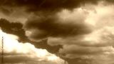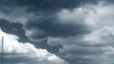 Dramatic stormy sky background. Dark fluffy cloudy sky. Halloween cloudscape background concept.