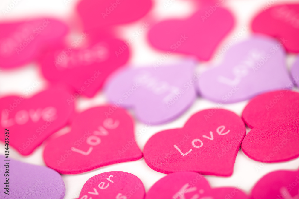 Pink hearts with white background