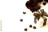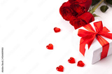 Rose, gift and hearts isolated on white background