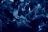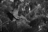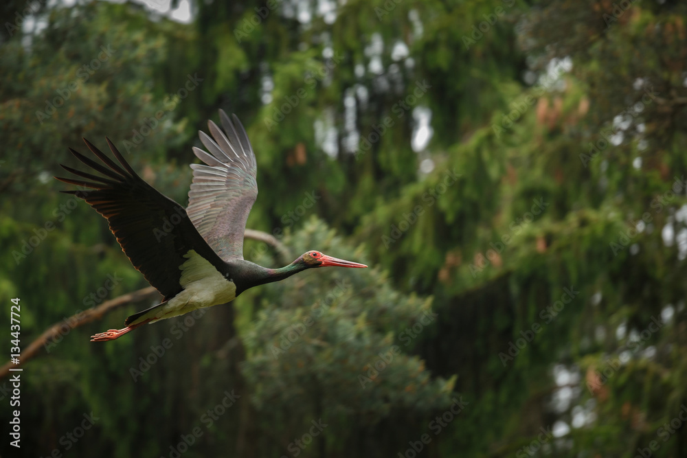 Black stork in the dark of the european forest, beautiful and big bird in the woodlands of czech republic, Ciconia nigra