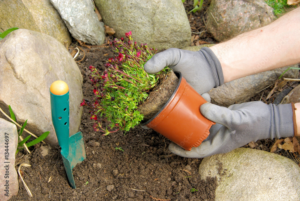 Einpflanzen Moossteinbrech - planting a saxifraga bryoides 01