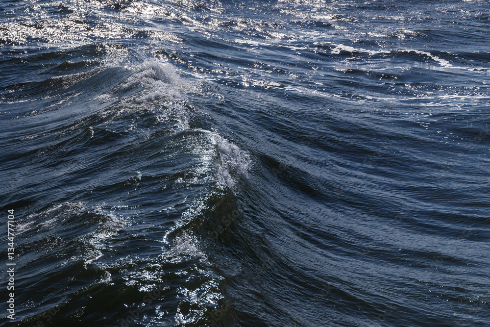 Glistening ocean waves gently crest under the sunlight, evoking tranquility
