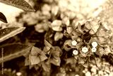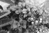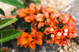 orange bougainvillea plant in full bloom in sunny backyard, close-up shot